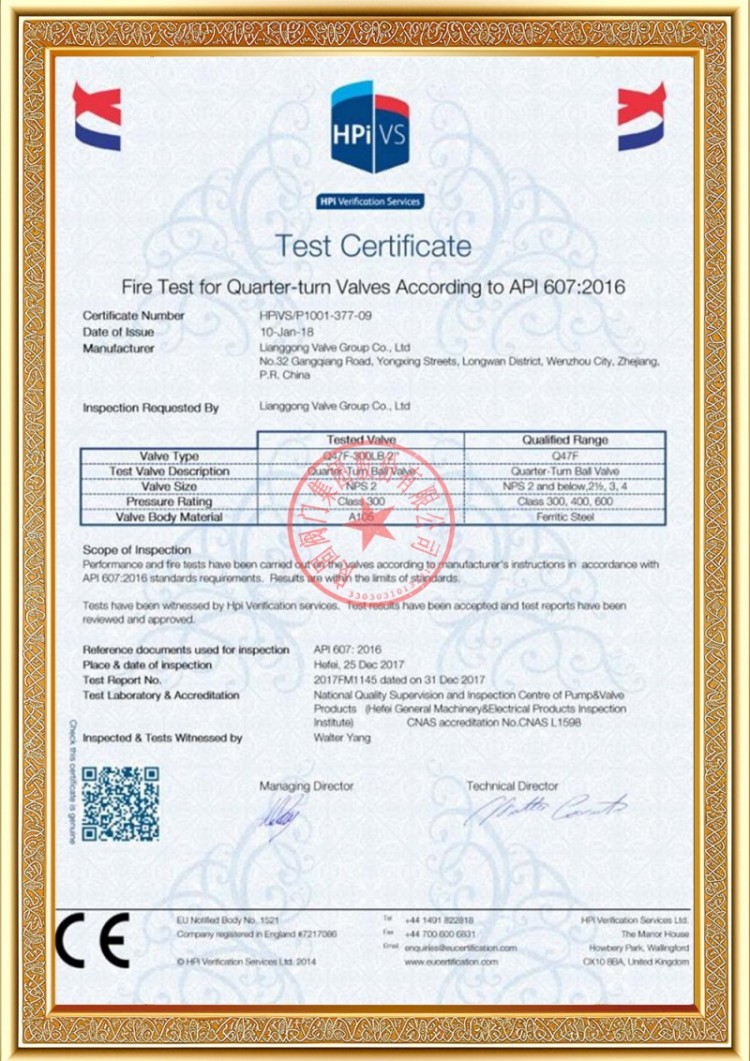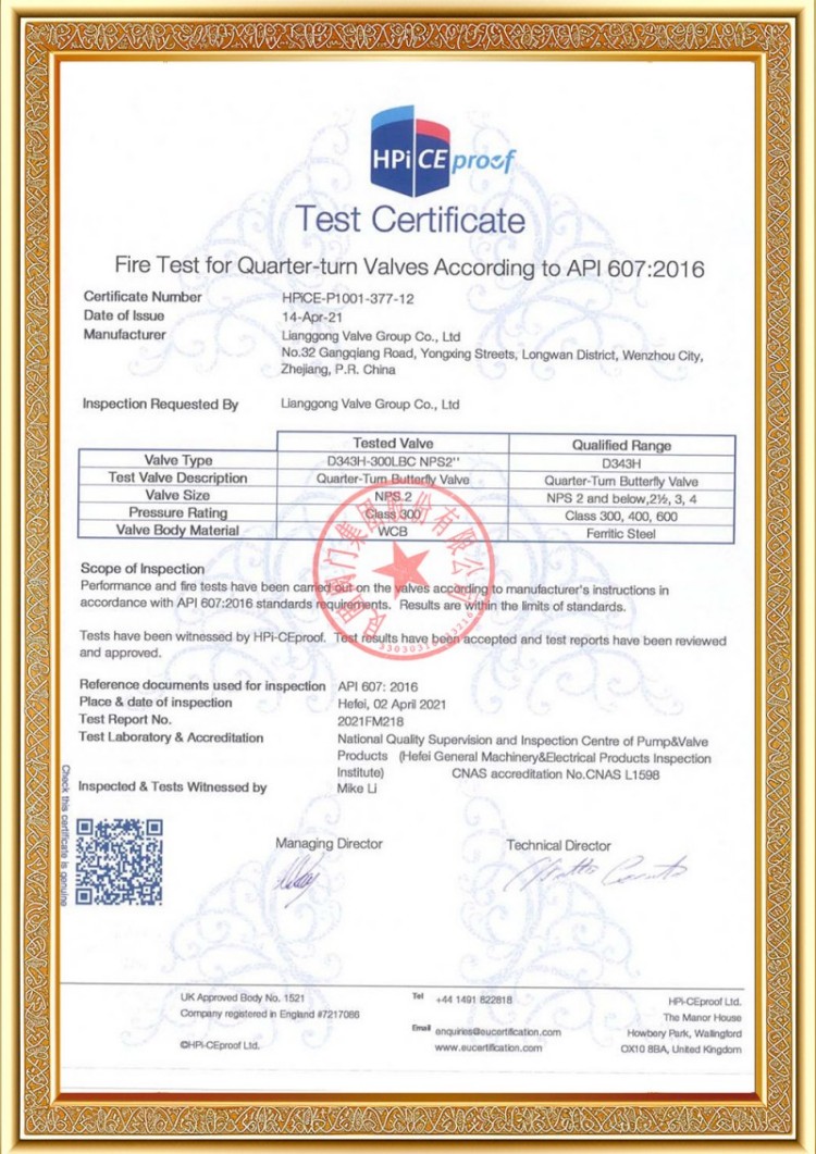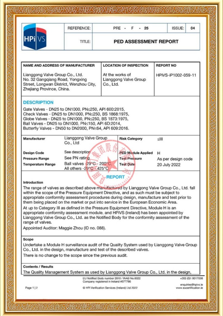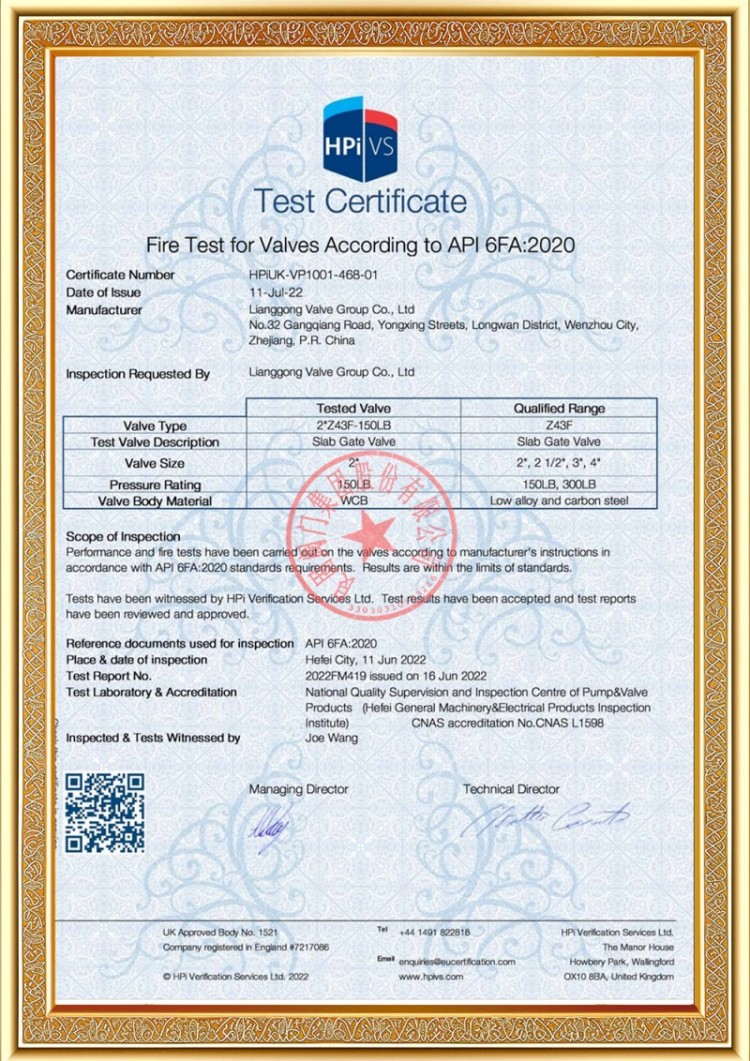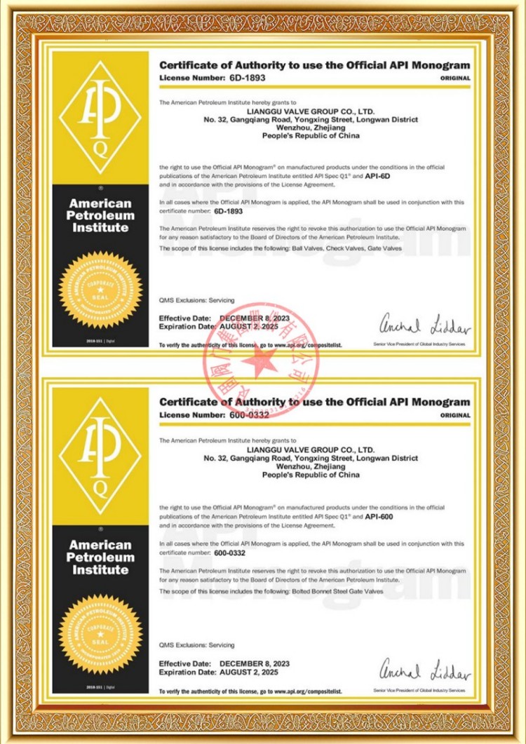 Unser Unternehmen verfügt über verschiedene Produktionslizenzen für Druckrohrleitungsventile und unsere Produkte haben die System- und Produktzertifizierungen TS A1, ISO 9001, ISO 14001, ISO 45001, API 6D, API 600, APL 609, CE/PED, API 607, API 6FA, ISO 15848-1 und EAC bestanden. Wir verfügen auch über Erfindungspatentzertifikate für verschiedene Ventile wie Kugelhähne, Absperrklappen, Sicherheitsventile und Absperrventile.